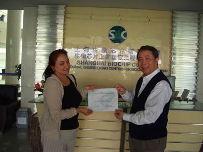 Dr. Shoba 授予上海生物芯片有限公司副總裁楊宏鈞博士認(rèn)證證書
