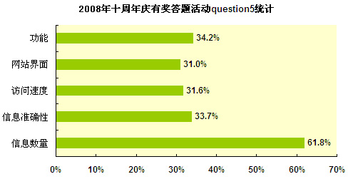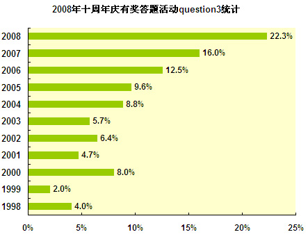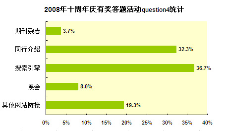 截止到2008年12月31日,我們共收到了來自全國(guó)各地的用戶有效反饋答卷1375份,有195個(gè)企業(yè)會(huì)員和1180個(gè)訪客參加了本次有獎(jiǎng)答題活動(dòng)。為了感謝廣大用戶對(duì)此次十周年慶有獎(jiǎng)答題活動(dòng)的積極參與,活動(dòng)策劃小組共設(shè)立了6個(gè)幸運(yùn)大獎(jiǎng)(1個(gè)一等獎(jiǎng),2個(gè)二等獎(jiǎng),3個(gè)三等獎(jiǎng))和600個(gè)紀(jì)念獎(jiǎng)(100個(gè)/月*6個(gè)月)。其中紀(jì)念獎(jiǎng)已經(jīng)在活動(dòng)進(jìn)行中的6個(gè)月陸續(xù)公布,您可以點(diǎn)擊以下鏈接查看到這些幸運(yùn)訪客的名單: