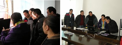 技術(shù)人員講解儀器工作原理 技術(shù)人員展示DEMO圖片