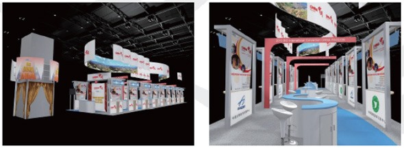 ·整體設計裝修、面向展館各主要方向的宣傳吊掛、總接待臺——提供整體咨詢 公共區(qū)域展板展示位置 16 處、 42 英寸 等離子電視 4 臺及播放設備,用于每日循環(huán)播放參展單位影音宣傳資料,每個展示單元可獲得播放時間 2 分鐘、投影屏幕 1 處、現(xiàn)場技術交流、路演、特色表演區(qū)域 6 處、公共洽談設施