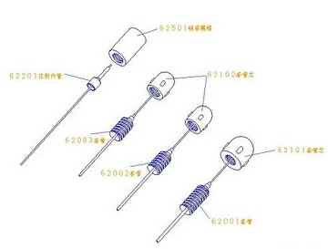 1.各套管頭部增加同樣大小的塑膠圓柱段,并與注射內(nèi)管特制的內(nèi)孔緊密配合,使兩者密封良好,防止注射液體的泄露;