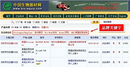 隨著生命科學(xué)的不斷發(fā)展和生物器材行業(yè)企業(yè)的重組,國(guó)內(nèi)外生命科學(xué)產(chǎn)品的新品種,新品牌也不斷出現(xiàn)。根據(jù)一些廠商企業(yè)的反映,經(jīng)我們認(rèn)真調(diào)研,發(fā)現(xiàn)還有部分買方用戶在進(jìn)行選型和比較時(shí),還存在對(duì)本領(lǐng)域的知名品牌不甚了解的情況,以致不能選擇到最合適的產(chǎn)品。為了做好對(duì)優(yōu)質(zhì)品牌的宣傳,增加用戶對(duì)新老品牌的了解,使買方用戶能快捷方便查找當(dāng)?shù)氐钠放平?jīng)銷商,本站在每個(gè)分類欄目中,新開辟品牌專區(qū),推出“品牌關(guān)鍵字”服務(wù)。