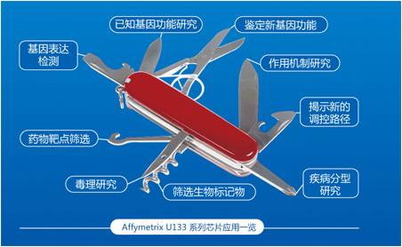 說(shuō)明: 1. 活動(dòng)時(shí)間為2010年10月10日—12月31日; 2. 參加活動(dòng)服務(wù)僅限"Affymetrix U133 Plus 2.0芯片服務(wù)”及“Affymetrix miRNA 芯片服務(wù)”兩款; 3. 需在活動(dòng)時(shí)間內(nèi)簽訂合同、支付款項(xiàng)、送樣方可享受以上促銷活動(dòng); 4. “買就送”送彩票活動(dòng)一人享受一次(不重復(fù)贈(zèng)送),送軍刀活動(dòng)一個(gè)合同號(hào)享受一次; 5. “做就減”活動(dòng)中樣品抽提屬于贈(zèng)送項(xiàng)目,若不需抽提,依然按照促銷價(jià)格結(jié)算; 6. “積分換”活動(dòng)可選擇禮品或在合同總額中減少等值金額; 7. 本次促銷活動(dòng)解釋權(quán)在上海伯豪生物技術(shù)有限公司。 促銷服務(wù)推介 Affymetrix U133 Plus 2.0芯片服務(wù)簡(jiǎn)介 Affymetrix GeneChip?系列的人表達(dá)譜芯片U133 Plus 2.0芯片上包含了人類基因組47,000個(gè)轉(zhuǎn)錄本,涵蓋了38,500個(gè)明確的人類基因。其芯片數(shù)據(jù)庫(kù)來(lái)源于GenBank,dbEST和RefSeq。序列簇信息由UniGene(Build 159, January 25, 2003)建立,并經(jīng)由華盛頓大學(xué),加州大學(xué)圣克魯斯分校和NCBI的公共數(shù)據(jù)庫(kù)共同整合而成。