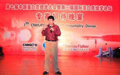 晚宴上,細胞生物中國科學(xué)院賀福初院士為大家致祝酒辭,他提到本次會議的目的是交流蛋白質(zhì)組學(xué)與轉(zhuǎn)化醫(yī)學(xué)的科學(xué)進步,并且促進全球合作和培養(yǎng)新一代的科學(xué)家。
