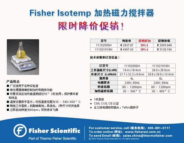 > 促銷 > Fisher Isotemp加熱磁力攪拌器限時(shí)降價(jià)促銷(30%off)