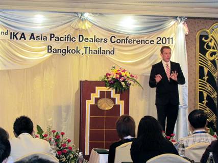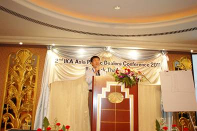 2011年7月5日,曼谷,Emerrald Hotel三樓金色會(huì)議廳, 德國IKA 第二屆亞太區(qū)代理商年會(huì)在此隆重舉行;來自馬來西亞、泰國、新加坡、菲律賓、印度尼西亞、澳大利亞、韓國等地區(qū)的近30家代理商50多名代表出席了本次會(huì)議。