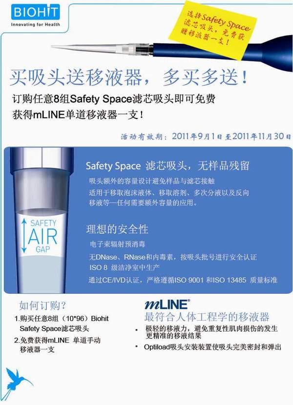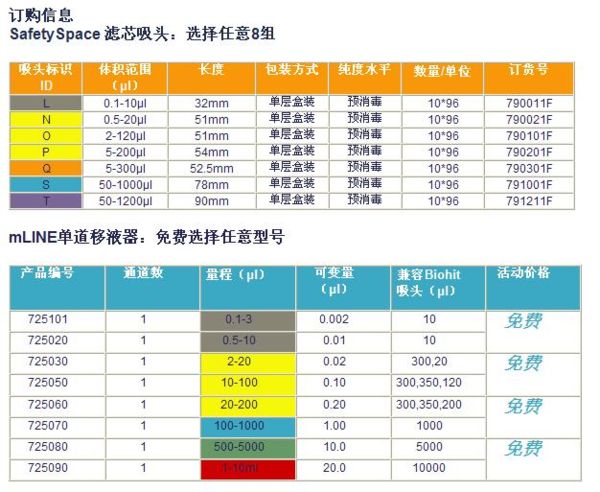 > 促銷(xiāo) > 訂購(gòu)濾芯吸頭送mLINE移液器啦!