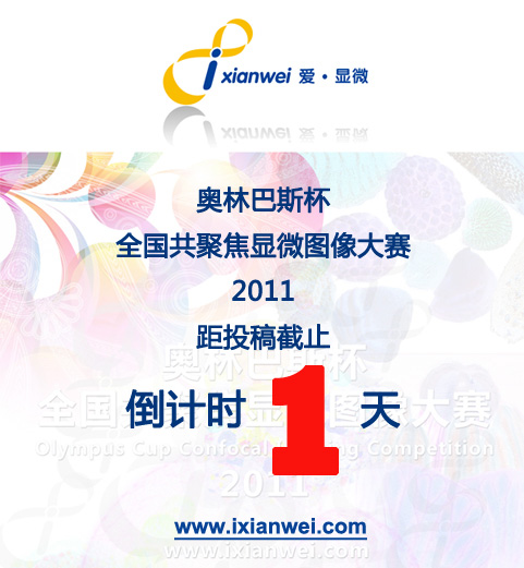 “奧林巴斯杯全國共聚焦顯微圖像大賽2011”自9月1日正式啟動以來,受到了社會各界的廣泛關注。目前,距離大賽作品最終提交及投票評論的期限11月30日,進入最后一天倒計時。想要參與的影友、顯友們千萬不要錯過!