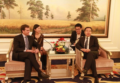 圖:武漢市委副書記兼市長唐良智先生(右)會見賽默飛中國區(qū)總經理邁世福先生