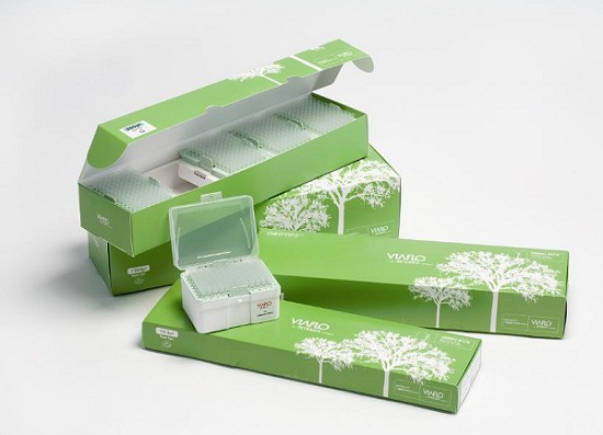 新的GREEN PACK™包裝使用100%可再生材料 (以大豆為原料制成的墨水) 加印,不帶吸頭盒,每款包裝里可容納5小盒非無菌GripTips™吸頭?蛻艨梢允褂盟麄儸F(xiàn)有的GripTips™吸頭盒,這不但可以減少65%非可再生的廢塑料,而且也顯著節(jié)約了實驗室的存儲空間。