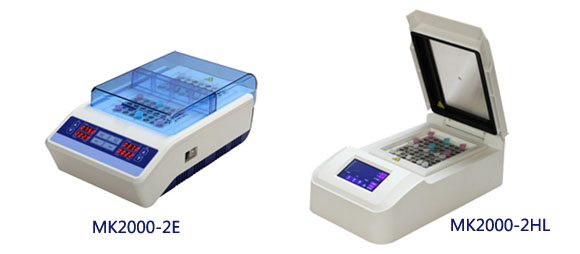 MK2000-2HL :對2個模塊進行同時控溫、并擁有PCR熱蓋技術,能進行簡單的PCR實驗的金屬浴