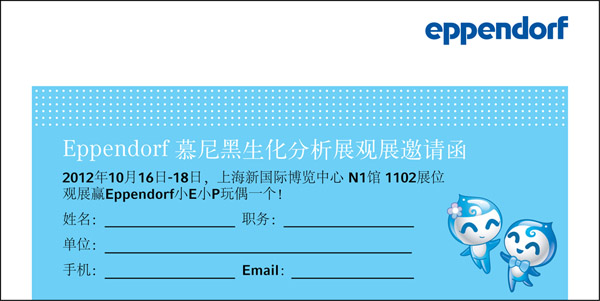 十年光陰彈指一揮,今年恰逢慕尼黑生化展十周年慶,而明年Eppendorf China 也即將迎來十周年成立盛典。為感謝大家一直以來對于Eppendorf 的關(guān)注和支持,攜帶填妥的打印邀請函前往上海新國際博覽中心N1館1102 Eppendorf 展臺,即可領(lǐng)取吉祥物小E或小P玩偶一件!每天限額100名,先到先得!