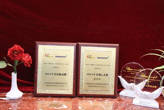 “海亞杯”慧聰網(wǎng)2012年教育裝備行業(yè)十大評選于2012年11月21日在北京慧聰產(chǎn)業(yè)基地盛大揭曉。上海智城分析儀器制造有限公司憑借龐大的研發(fā)團(tuán)隊、先進(jìn)的技術(shù)、極高的細(xì)分市場占有率和良好的用戶感受度,躋身于教育裝備行業(yè)2012年度最具影響力十大民族品牌行列,公司創(chuàng)始人沈水興同時獲得教育裝備行業(yè)2012年度最具影響力十大風(fēng)云人物稱號。