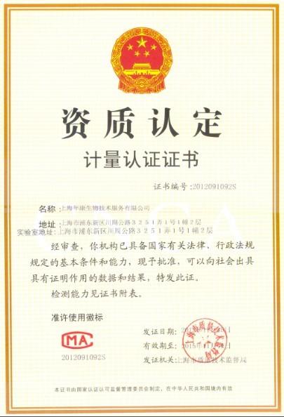 上海年康生物技術(shù)服務(wù)公司順利通過(guò)計(jì)量認(rèn)證(CMA)