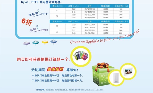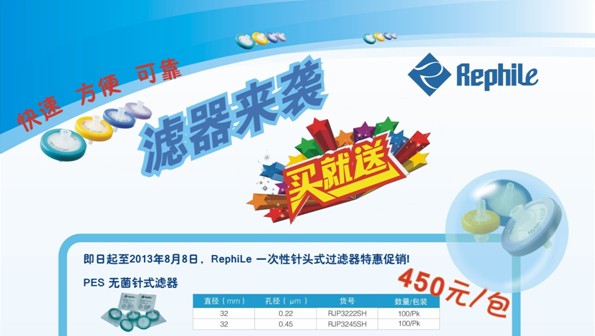 即日起至2013年8月8號, RephiLe一次性針頭式過濾器特惠促銷: