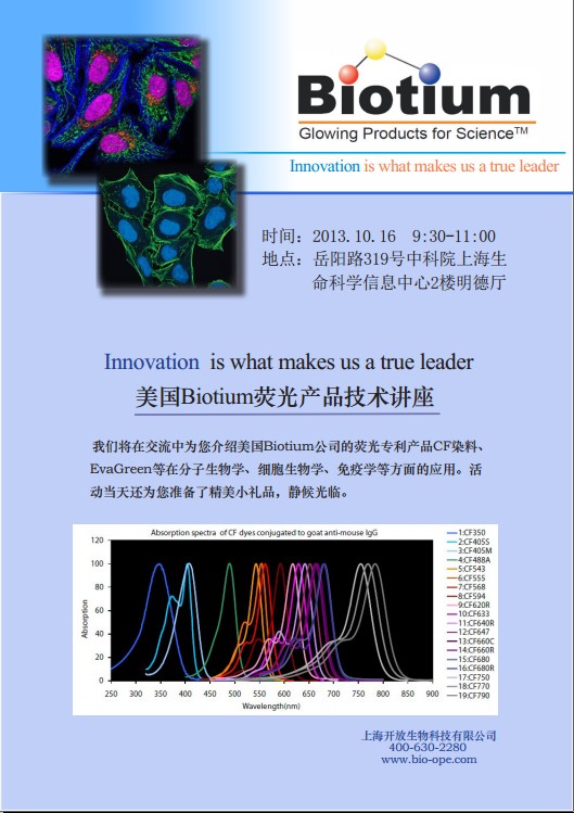 ----中科院上海生命科學(xué)信息中心美國(guó)Biotium熒光產(chǎn)品技術(shù)講座通知