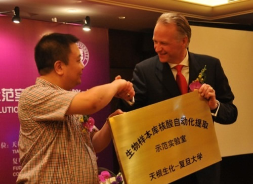 中國上海——2013年9月16日,天根生化科技(北京)有限公司與復(fù)旦大學(xué)現(xiàn)代人類學(xué)教育部重點(diǎn)實(shí)驗(yàn)室合作開展的“生物樣本庫核酸自動(dòng)化提取示范實(shí)驗(yàn)室”簽約儀式圓滿舉行。
