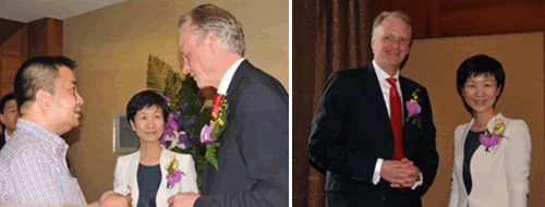 從左至右:復(fù)旦大學(xué)副校長(zhǎng)金力教授、TIANGEN總經(jīng)理孫克菲女士、QIAGEN全球副總裁Benedikt 先生