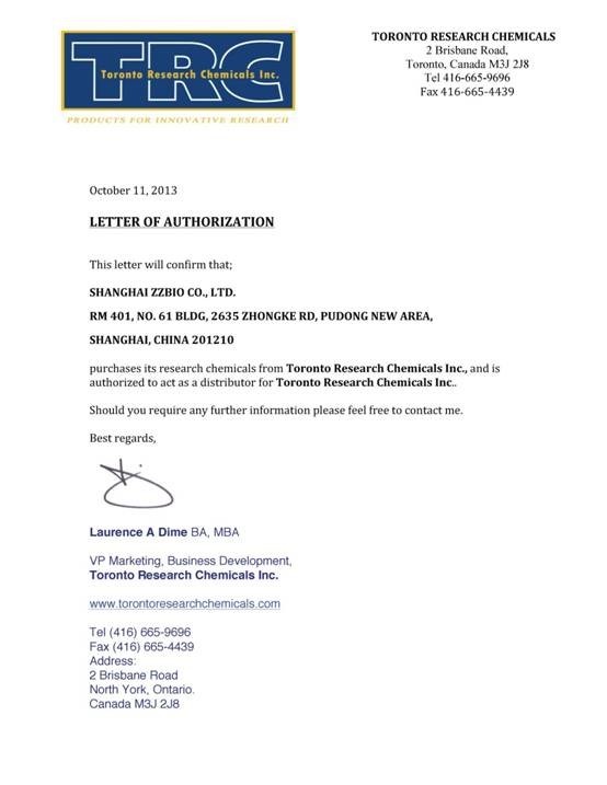 熱烈慶祝上海甄準生物成為TRC(Toronto Research Chemicals Inc.)一級代理。我們將一如既往為您提供最好的服務。