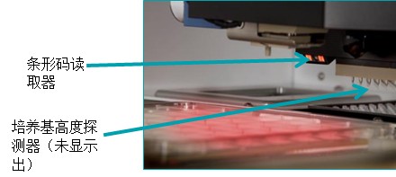 圖五:條形碼讀取器和培養(yǎng)基高度自動(dòng)探測(cè)裝置
