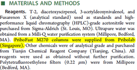 薛教授參與研究的這個(gè)項(xiàng)目來自國(guó)家高技術(shù)研究發(fā)展863計(jì)劃的資助,參與的單位包括:中國(guó)科學(xué)院、甘肅農(nóng)業(yè)大學(xué)、中國(guó)農(nóng)業(yè)大學(xué)、中國(guó)海洋大學(xué)等多等國(guó)家級(jí)高等科研院校的高級(jí)研究人員。發(fā)表出如此高的文章,Pribolab公司的產(chǎn)品也發(fā)揮了積極的作用,而且客戶對(duì)Pribolab公司的PriboFast® M270 多功能凈化柱的凈化效果非常滿意,表示后期將會(huì)繼續(xù)使用Pribolab公司的產(chǎn)品進(jìn)行真菌毒素方面的研究,并評(píng)價(jià)Pribolab公司是值得信賴的合作伙伴,不但協(xié)助其篩選合適的樣品前處理產(chǎn)品,而且產(chǎn)品售后技術(shù)服務(wù)好。Pribolab公司也將繼續(xù)努力,應(yīng)用穩(wěn)定的技術(shù)平臺(tái)和專業(yè)的服務(wù)為更多科研工作者服務(wù),協(xié)助發(fā)表更多更高影響因子的文章。