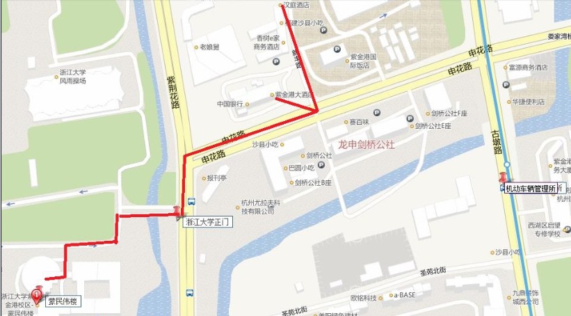 到店方法:由機(jī)場或火車站乘坐出租車到紫荊花路與申花路交匯處,距浙江大學(xué)紫金港校區(qū)正門約200米