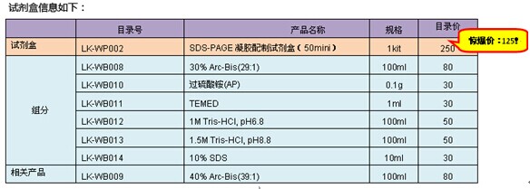 促銷(xiāo)活動(dòng) 活動(dòng)時(shí)間:即日起至 活動(dòng)內(nèi)容:活動(dòng)期間,凡從聯(lián)科生物購(gòu)買(mǎi)蛋白膠配制試劑盒,可以享受 |