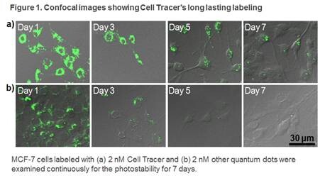 Table 1. Cell Tracer outperforms other QDs in terms of long term tracing
