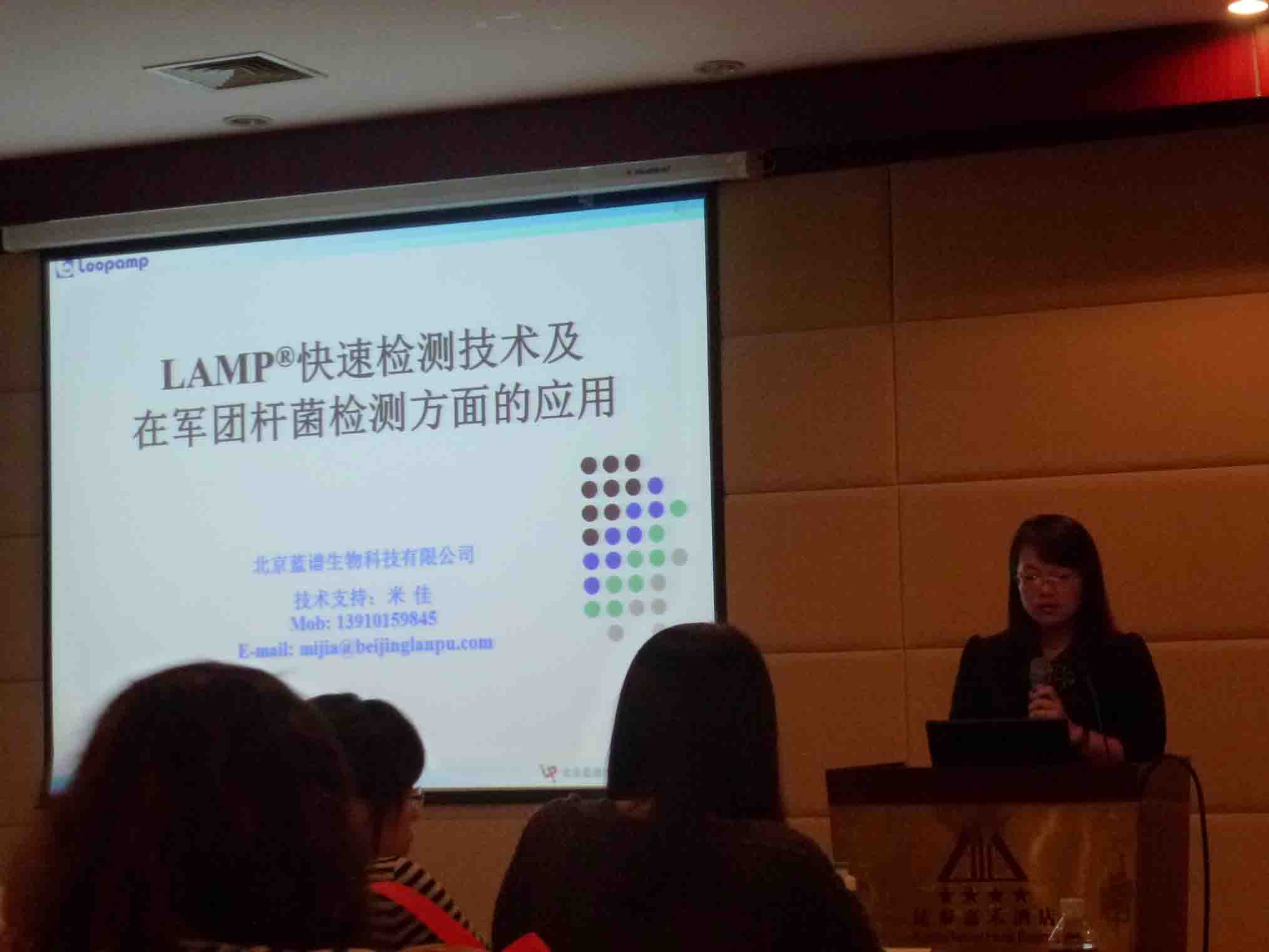 北京藍(lán)譜生物科技有限公司,作為日本榮研公司在中國地區(qū)的總代理,應(yīng)邀在大會上對LAMP®快速檢測技術(shù)及其在軍團(tuán)桿菌檢測方面的應(yīng)用進(jìn)行了介紹,向與會人員介紹了公司最新的軍團(tuán)菌快速檢測試劑盒產(chǎn)品,該試劑盒能快速、準(zhǔn)確的檢測水樣中的軍團(tuán)菌,包含前處理試劑,一個小時內(nèi)能得到檢測結(jié)果,加入熒光染料可肉眼直接觀察結(jié)果。會上提問積極,氣氛熱烈,通過提問與解答環(huán)節(jié),增進(jìn)參會者對LAMP技術(shù)以及藍(lán)譜新產(chǎn)品的了解,取得了良好的宣傳效果。