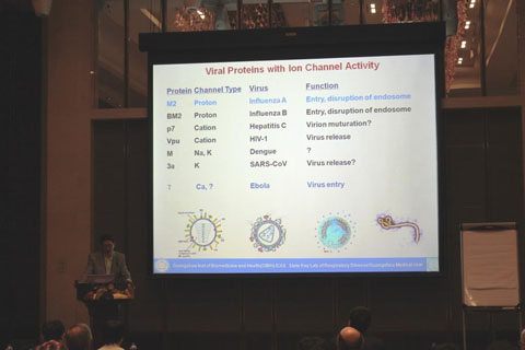 國家呼吸道疾病重點實驗室副主任陳凌博士講解離子通道與抗病毒治療關系