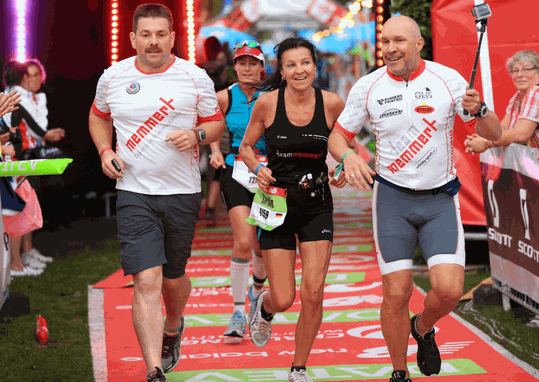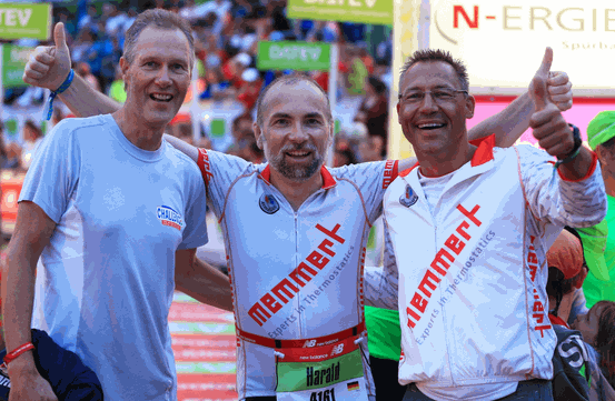 相較而言,Memmert的延后出發(fā)運(yùn)動(dòng)員就稍稍運(yùn)氣了些,因?yàn)樗麄兛梢越M團(tuán)分段接力完成比賽,累計(jì)成績(jī)。跟去年一樣,許多Memmert員工抓住機(jī)會(huì)再次集體參賽。