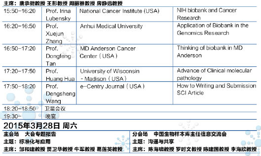一年一度的中國醫(yī)藥生物技術(shù)協(xié)會組織生物樣本庫分會年會:第七屆中國生物樣本庫標準化建設(shè)與應(yīng)用研討會暨第二屆中國生物樣本庫院長高峰論壇首屆中美臨床轉(zhuǎn)化醫(yī)學(xué)論壇將于2015 年3月26 日—3 月28 日在中國•上海隆重召開。本次會議由中國醫(yī)藥生物技術(shù)協(xié)會、中國醫(yī)學(xué)科學(xué)院主辦,中國醫(yī)藥生物技術(shù)協(xié)會組織生物樣本庫分會、全國生物樣本標準化技術(shù)委員會(籌)、生物芯片上海國家工程研究中心、復(fù)旦大學(xué)附屬中山醫(yī)院、復(fù)旦大學(xué)附屬腫瘤醫(yī)院、 同濟大學(xué)附屬同濟醫(yī)院等承辦。