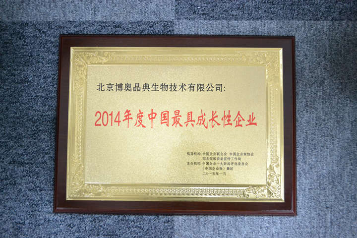 1月30日,第十一屆中國企業(yè)發(fā)展論壇曁第二十屆(2014)中國企業(yè)十大新聞揭曉儀式在山東德州舉行。北京博奧晶典生物技術(shù)有限公司以領(lǐng)先的行業(yè)優(yōu)勢(shì)及快速的發(fā)展勢(shì)頭榮獲“2014年度中國最具成長性企業(yè)”的稱號(hào)。