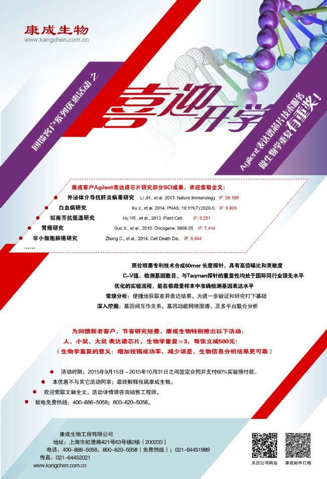 喜迎開學(xué):康成表達(dá)譜芯片服務(wù),做生物學(xué)重復(fù)有重獎(jiǎng)!