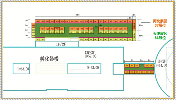 戶外展區(qū)—孵化樓前 標(biāo)準(zhǔn)展位:68個(gè) 尺寸:3mⅹ2m
