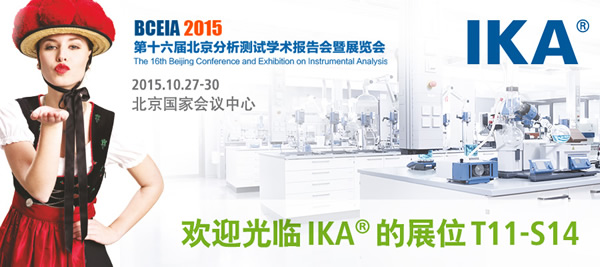 德國IKA誠邀您于2015年10月27-30日期間,蒞臨參觀我們在北京國家會議中心BCEIA展會現(xiàn)場的展臺,展位號T11-S14。