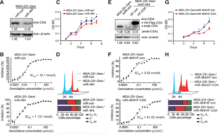 6. miR-484/CDA調(diào)節(jié)乳腺癌細(xì)胞吉西他濱抗性、細(xì)胞增殖以及細(xì)胞周期重分布