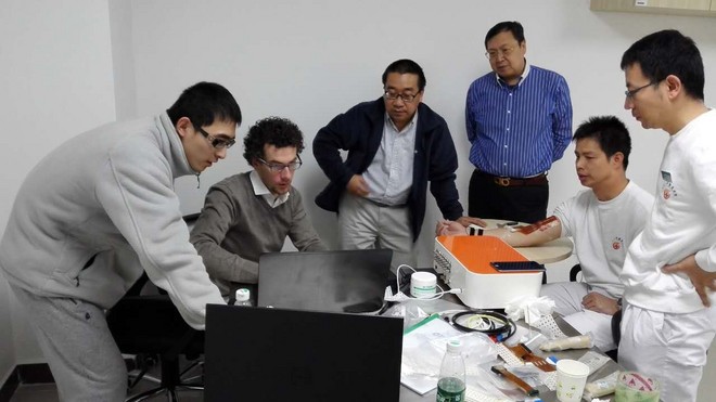 高密度矩陣式表面肌電記錄系統(tǒng)在中的首位使用者,傷院康復(fù)中心首席研究員,周平教授出:該設(shè)備的投入使用,將為我的仿生骨肌系統(tǒng)設(shè)計(jì)、智能機(jī)器人研究提供更深層次的探索手段,在康復(fù)研究和臨床應(yīng)用領(lǐng)域中有著高的價(jià)值。正在康復(fù)中心進(jìn)行學(xué)術(shù)訪問(wèn)的美芝加哥康復(fù)研究院(RIC)副院長(zhǎng)Rymer教授一行也興致盎然地加入了討論,并對(duì)其設(shè)備的性能和應(yīng)用研究領(lǐng)域表示了強(qiáng)烈的興趣。