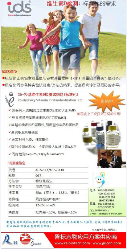 為便于廣大科研用戶采用國(guó)外進(jìn)口優(yōu)良品質(zhì)產(chǎn)品來開展與25羥基維生素D相關(guān)的研究, 北京榮志海達(dá)特推出25羥基維生素D標(biāo)準(zhǔn)化檢測(cè)試劑盒促銷活動(dòng),詳情可來電詢問。