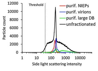 人巨細胞病毒( human cytomegalovirus HCMV) 是皰疹病毒科 β 屬dsDNA病毒。HCMV在人群中的感染非常普遍,感染患者免疫功能正常時一般無明顯臨床癥狀。然而當免疫功能受抑制時,如在艾滋病患者,器官移植患者以及嬰幼兒體內,HCMV會引發(fā)嚴重癥狀甚至導致死亡。同時,HCMV是人類先天性感染最常見的病毒之一, 對孕婦及胎兒危害較大, 常造成流產、死胎、胎兒畸形、發(fā)育遲緩、聽力障礙、神經系統(tǒng)遲緩等。目前針對HCMV尚無有效治療手段,因此研發(fā)特異性預防性疫苗一直以來是針對HCMV的優(yōu)先級研究對象。 空白雖然疫苗研發(fā)已有40多年的研發(fā)歷程,但是目前臨床上尚無有效的HCMV疫苗。在病毒疫苗研發(fā)過程中,病毒顆粒分析是非常關鍵的環(huán)節(jié)。傳統(tǒng)的分析方法,依賴于病毒蛋白或DNA染料。這種分析方法有很大的局限性,因為同一種類型的病毒,會有不同類型的病毒顆粒,如HCMV病毒顆粒,包括感染性病毒顆粒(直徑約200nm),非感染性致密小體和包膜顆粒。其中不同病毒顆粒攜帶有相同蛋白質包膜的特點,極大地限制了通過蛋白質特異性抗原進行病毒顆粒的區(qū)分。此外,雖然30年以前已有研究人員嘗試流式分析法分析病毒顆粒,并且在最近的研究中,美國哈佛醫(yī)學院科學家Dr. Raphael Gaudin和其同事利用流式分析法揭示了病毒表面糖蛋白濃度和病毒傳染性的關系,但是由于傳統(tǒng)流式散射光檢測靈敏度的局限性,新的分析設備和分析方法仍然亟待建立起來。 空白近日,美國默克集團研發(fā)人員Josef Vlasak等人通過在減毒的AD169毒株上恢復表達gH,并建立全新的HCMV納米流式分析方法,實時監(jiān)控病毒顆粒,及時優(yōu)化疫苗生產條件,最終在提高疫苗接種的免疫反應上取得了重大突破。該疫苗的免疫優(yōu)勢為,它可以全面地呈現HCMV糖蛋白,并且可以引起更加強烈的CD8+免疫細胞反應,進而保護不同類型的細胞免受感染,目前已經處于I 期臨床實驗。其中,納米流式分析法,研發(fā)人員推薦使用了英國Apogee公司超靈敏納米流式分析儀Apoge A50 Micro。Apoge A50 Micro獨特的光路設計允許通過散射光檢測低至80nm的小顆粒物質,同時擁有極佳的分辨率(10nm)。僅僅通過散射光,Apoge A50 Micro便可以收集病毒樣品多屬性的表征信息(圖1)(包括病毒滴度和顆粒純度等信息)。這些信息輕易地獲取方式可以替代那些消耗人力和時間的檢測方式,讓近乎實時地監(jiān)測各種病毒顆粒的分泌水平(圖2),極大地加快推動疫苗研發(fā)稱為可能。此外,結合免疫熒光,Apoge A50 Micro還可以分析HCMV關鍵抗原(gB或gH)在不同病毒顆粒上的分布(圖3),監(jiān)控病毒顆粒的純度。因此,Josef Vlasak等人建立的HCMV納米流式分析方法,將會給HCMV信息表征和疫苗研發(fā)帶來巨大的便利,同時也對研究其它種類的大病毒顆粒及疫苗研發(fā)具有非常重要的參考價值。 | ||||||||||||