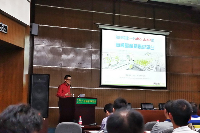 在關于植物表型的報告中,韓博士就植物表型組學的概念、國際植物表型領域的發(fā)展現狀和存在問題、如何定制化構建一個affordable的表型平臺、以及表型技術如何從實驗室走向溫室進而走進田間等做了詳細介紹。