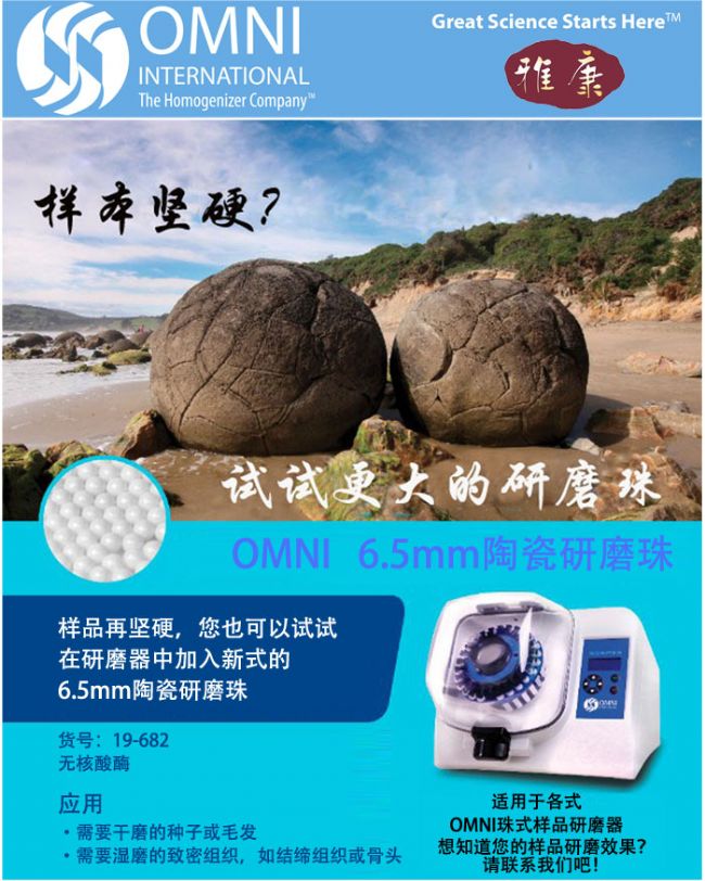 雅康公司針對(duì)堅(jiān)硬樣品新推美國(guó)OMNI 6.5mm大陶瓷研磨珠
