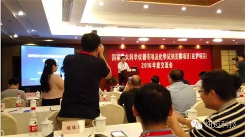 本次會議特邀科技部吳學梯司長做國家重大儀器設備開發(fā)專項回顧的報告。旨在交流國家重大科學儀器及設備專項及化學試劑支撐項目工作,進一步推動科學儀器和化學試劑產業(yè)化發(fā)展和應用技術。據悉,紐邁分析于2013年承擔了國家重大儀器專項,近3年來,紐邁分析勤勤懇懇,勇于創(chuàng)新,推出多款核磁共振分析成像設備,并根據科研的個性化需求進行定制,并與國內數(shù)10家高校和科研機構建立聯(lián)合共建實驗室,真正實現(xiàn)產學研結合,致力于科技成果轉化工作,努力成為國產科學儀器企業(yè)的典范。