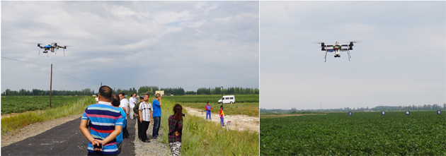 2016年8月7日,北京易科泰生態(tài)技術(shù)公司無人機(jī)遙感事業(yè)部與昌吉州供銷合作社聯(lián)合社、新疆天山羽人農(nóng)業(yè)航空科技有限公司等一起,來到昌吉供銷合作社濱湖鎮(zhèn)棉花航空作業(yè)示范基地,進(jìn)行了無人機(jī)植保作業(yè)演示和遙感作業(yè)。中國工程院院士、華南農(nóng)業(yè)大學(xué)羅錫文教授及昌吉州有關(guān)領(lǐng)導(dǎo)等也到場參觀指導(dǎo)。
