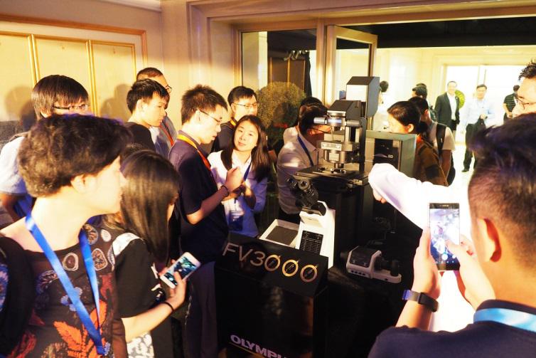 現(xiàn)場(chǎng)來(lái)賓在工作人員講解下深入了解FV3000產(chǎn)品