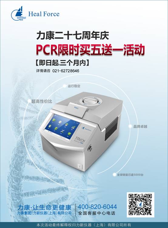 為慶祝力康集團(tuán)(HealForce)成立27周年,同時(shí)為讓更多的客戶熟悉了解并使用“HEAL FORCE”品牌PCR基因擴(kuò)增儀,經(jīng)公司討論研究決定,自2016年9月起繼續(xù)開展PCR儀買五送一限期促銷活動(dòng)!