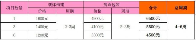 1、以上載體構(gòu)建優(yōu)惠僅限于現(xiàn)有的庫存基因(小于2000bp)。