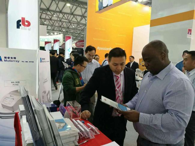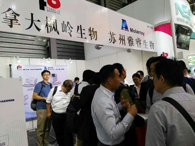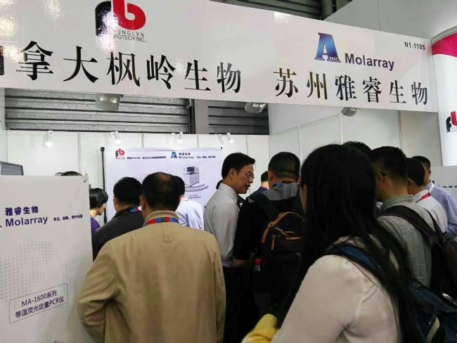 此次我們的參展的儀器有加拿大原裝進口的FTC-3000和FTC-8000系列實時熒光定量PCR儀、國內生產(chǎn)的等溫熒光定量PCR儀、普通PCR儀、便攜式實時熒光定量PCR儀、全自動核酸提取儀、核酸提取工作站、全自動微生物檢測系統(tǒng)等多種儀器,參展產(chǎn)品吸引了眾多的國內外展商和客戶,引起了參會者的高度關注。(楓嶺生物展位:N1-1105)