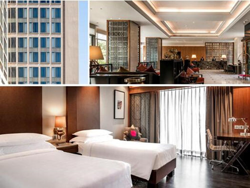 酒店門口就是游樂場和大型商場,道路稍顯擁擠,根本沒有空間拍到酒店外貌全景