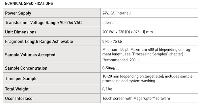Megaruptor®的完美設計,使其具有簡單化、自動化、高重復性,可以獲得2 kb - 75 kb長度的DNA片段。剪切性能卓越,不受DNA樣品來源、集中度、溫度、鹽濃度的限制,完全符合了科研人員的實驗要求。同時,在無人員值守的情況下,友好的軟件系統(tǒng)可以允許兩個樣品相繼被片段化處理,不存在交叉污染?蒲腥藛T只需要簡潔有效地設定好參數(shù),儀器便可以自動化地進行處理獲得目的片段。